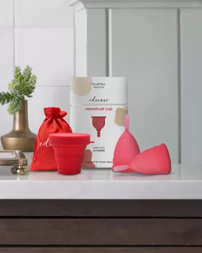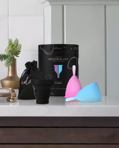 Copa menstrual de Edicare. Es un dispositivo seguro, adecuado y cómodo para utilizar durante el período menstrual. El pack incluye 2 copas menstruales con esterilizador y una bolsita para transportarla cómodamente. Esta copa menstrual ha sido fabricada en silicona médica, y es ideal tanto desde el punto de vista higiénico como desde el punto de vista de comodidad. Disponible en talla S o L.